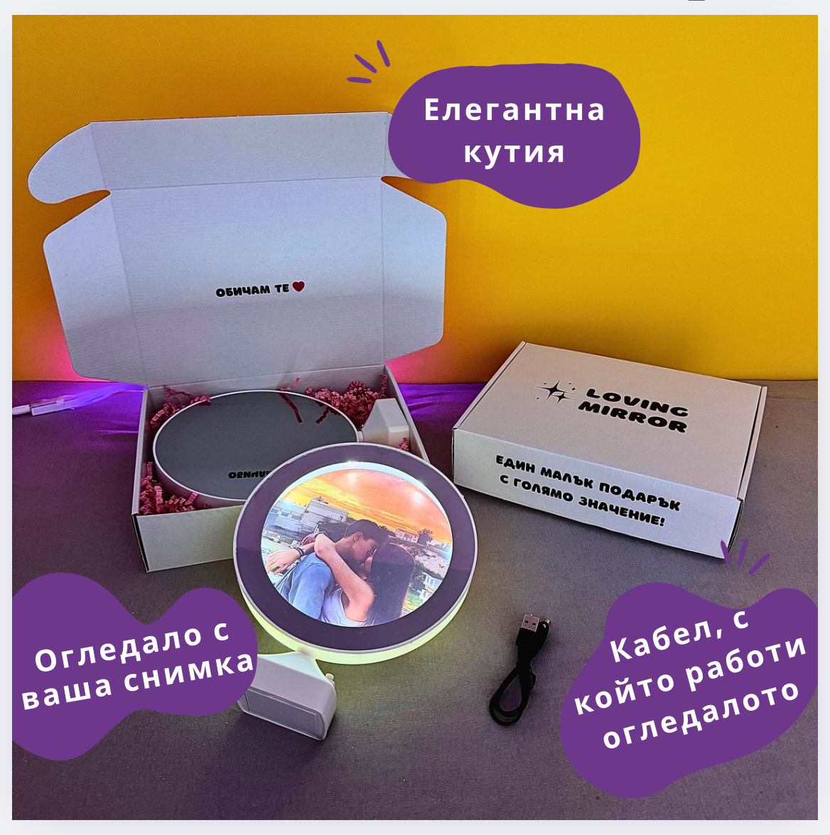 Огледалото може да свети при натискане на бутона, ако е свързано към контакт с кабелчето, което е включено в комплекта, или ако поставените в огледалото три батерии АА.